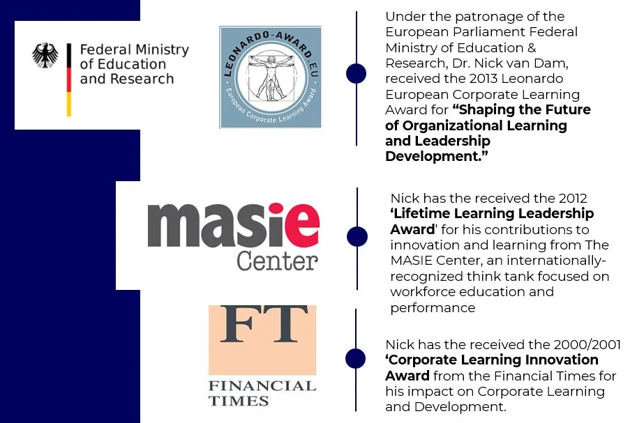 Dr. van Dam has been widely recognized for his impactful contributions to corporate learning and leadership development. His innovative approach and deep expertise have earned him accolades from various institutions and appreciation from participants in his programs, who have greatly benefited from his insights.